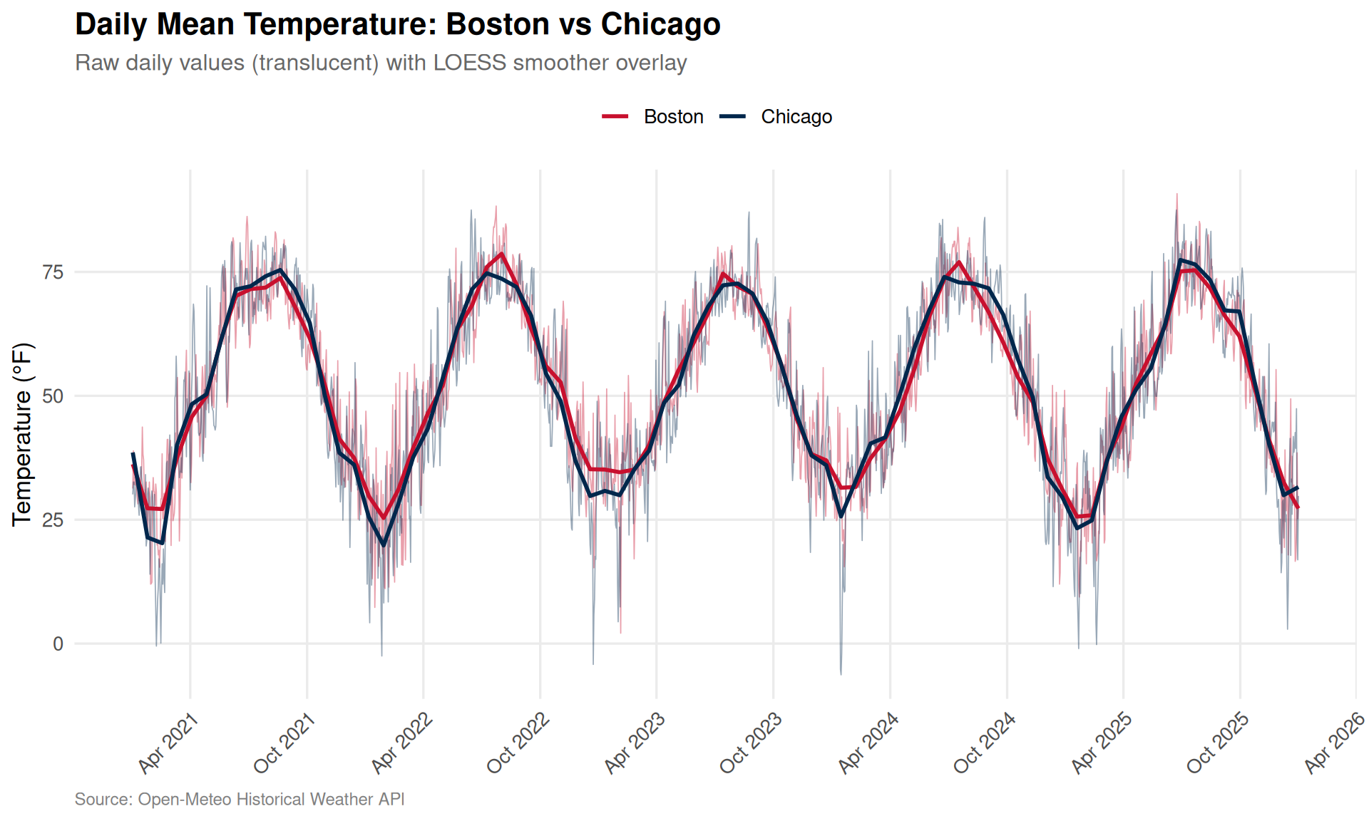 Sister Cities in the Cold: How Correlated Is the Weather in Boston and Chicago?
